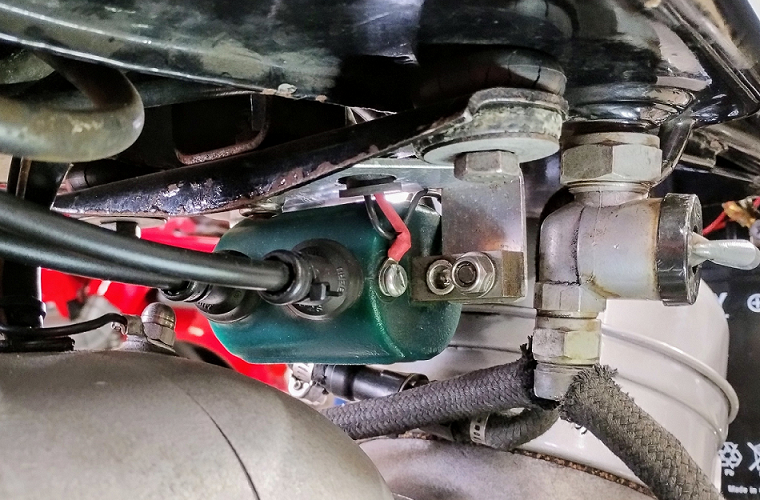 ■次回ダイオードを脱着する時は、純正のようにゴムマウントを壊して、タンクを外し、苦労して、セルモーター側からナットを脱着する必要がなくなります。この取付方法は、R50/5-90Sと同じです。
